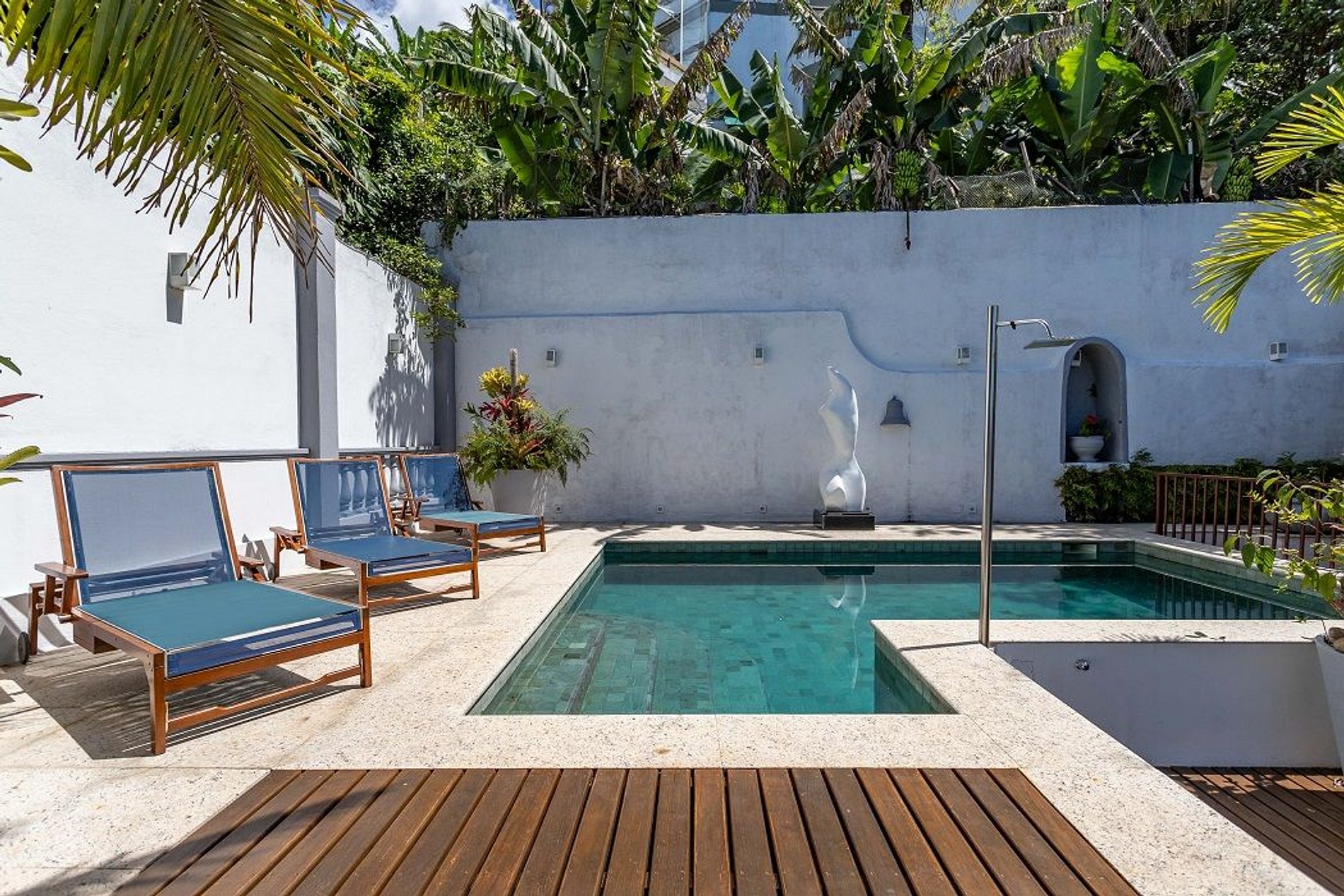 Viva férias inesquecíveis no Rio nesta vila tropical dos sonhos, antiga residência da famosa cantora Elis Regina. Situada em um condomínio fechado e cercada por uma mata exuberante, a casa fica a apenas 8 minutos da Praia do Leblon.