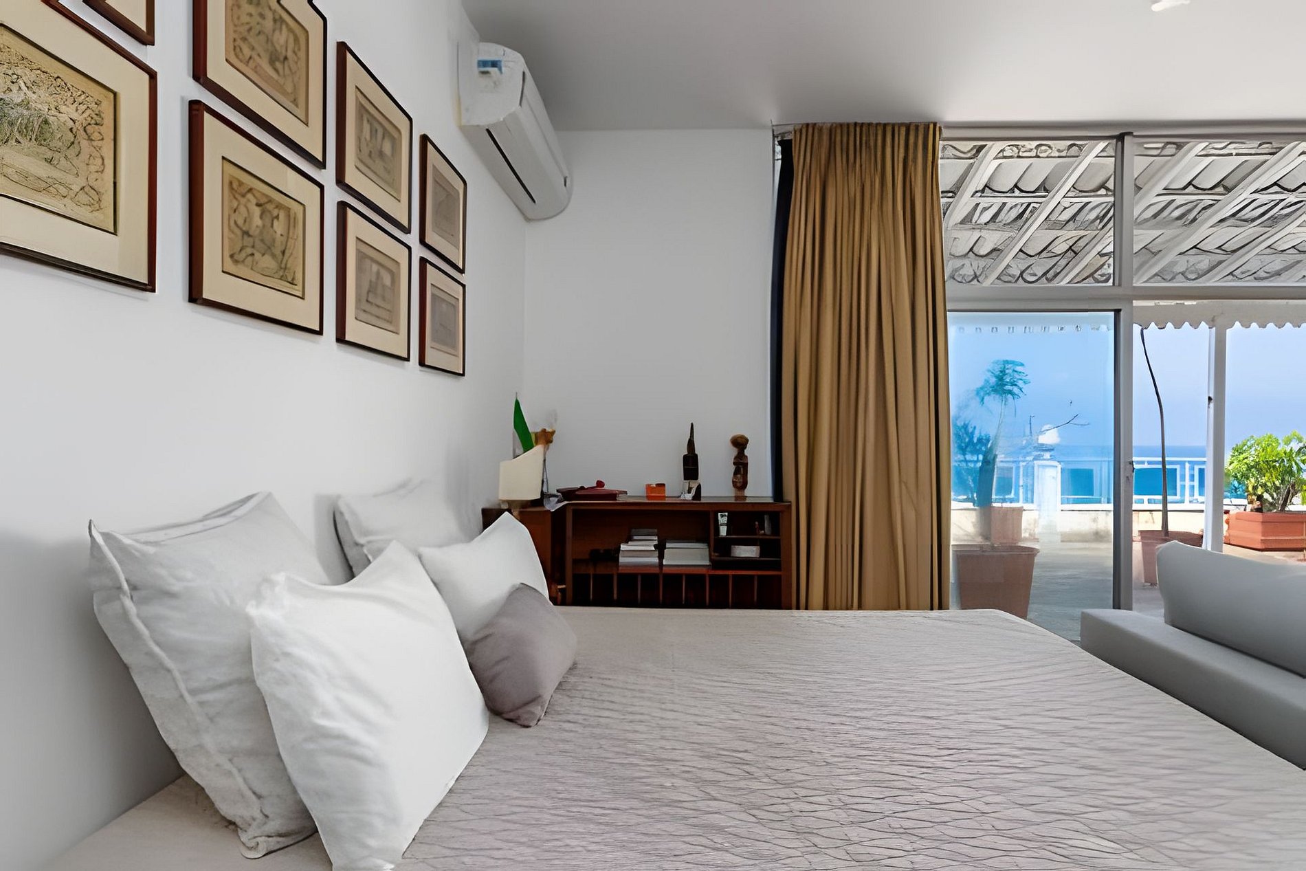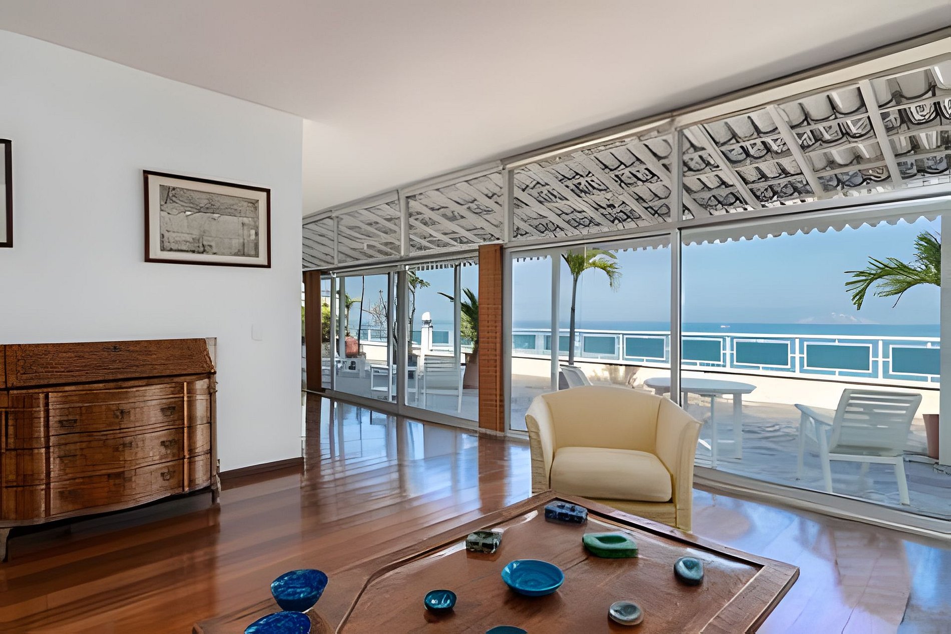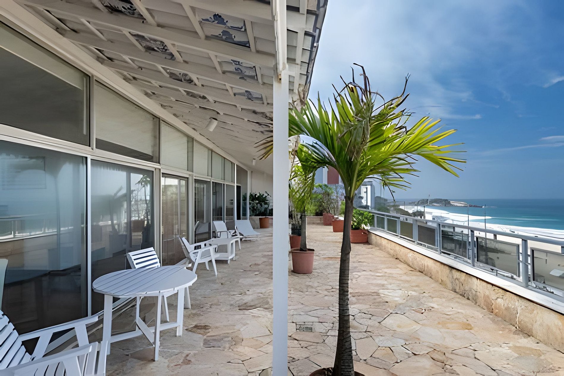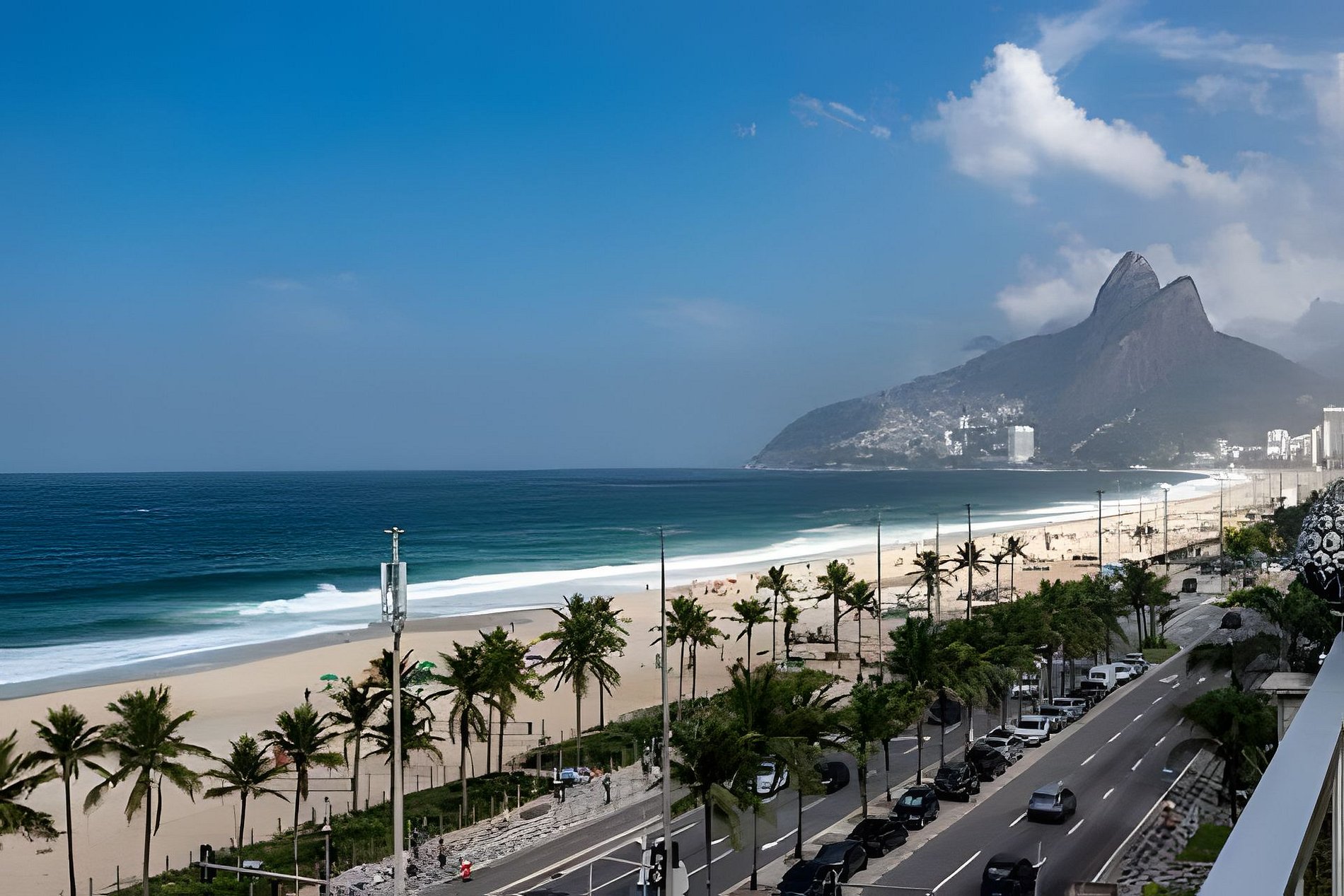 Esta cobertura linear de 900 m², idealmente localizada de frente para a Praia de Ipanema, possui quatro quartos, incluindo duas suítes, e três varandas. Seu amplo pátio com vista para o mar oferece vistas espetaculares de 180°, que se estendem do Arpoador até a famosa Serra de Dois Irmãos.