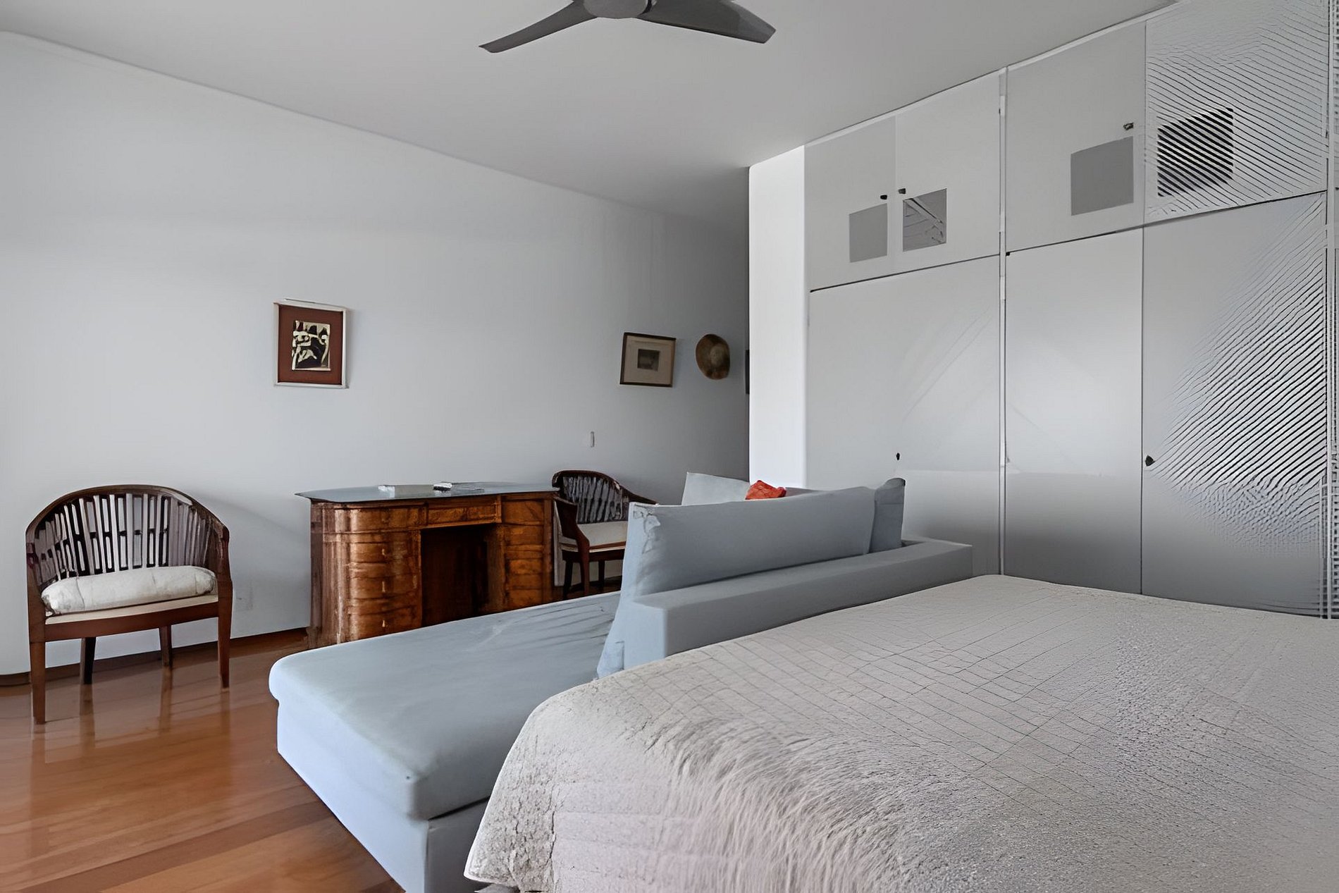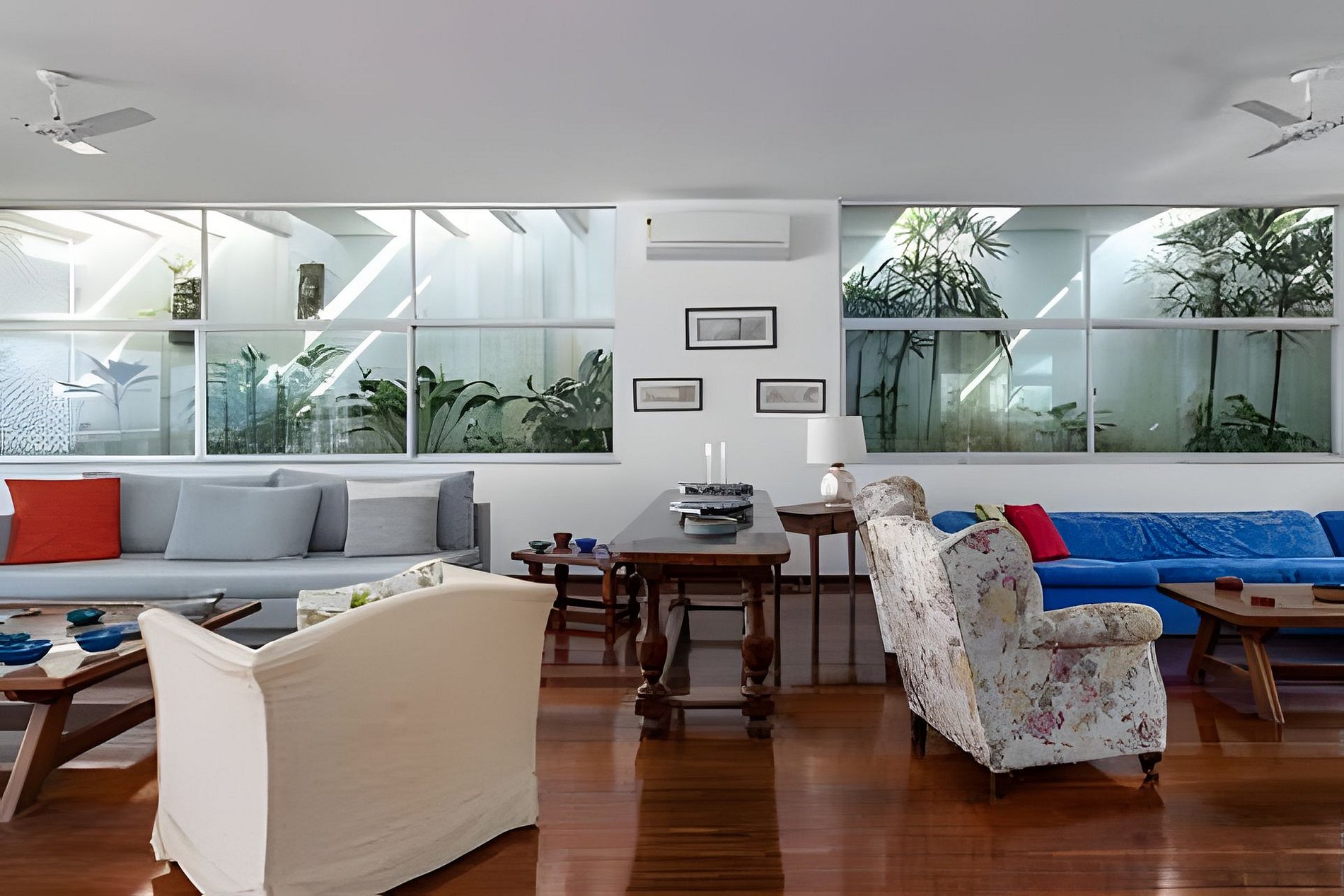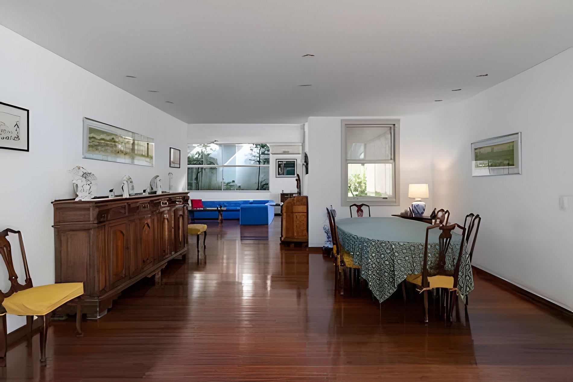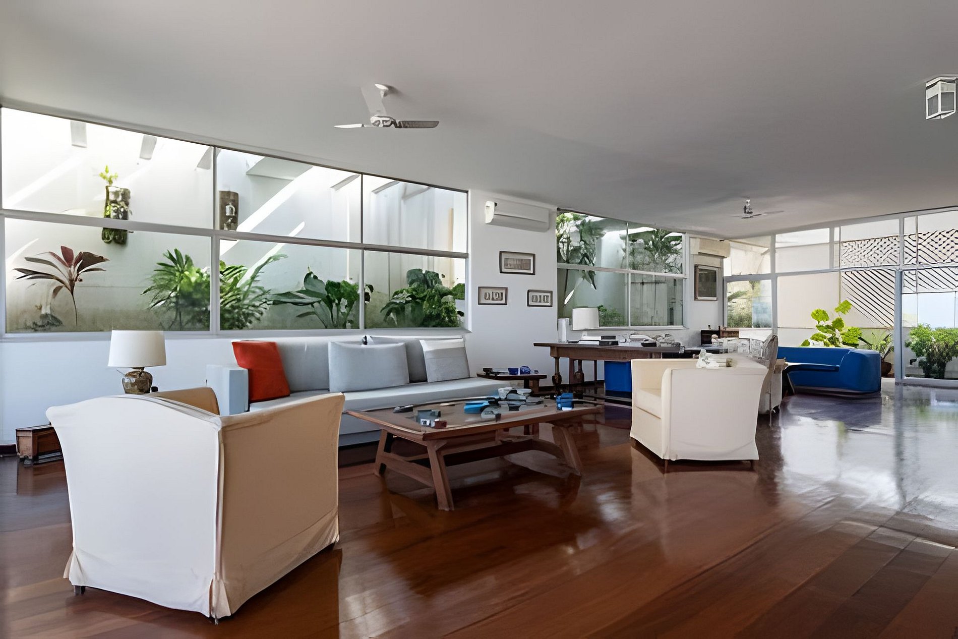 Esta cobertura linear de 900 m², idealmente localizada de frente para a Praia de Ipanema, possui quatro quartos, incluindo duas suítes, e três varandas. Seu amplo pátio com vista para o mar oferece vistas espetaculares de 180°, que se estendem do Arpoador até a famosa Serra de Dois Irmãos.