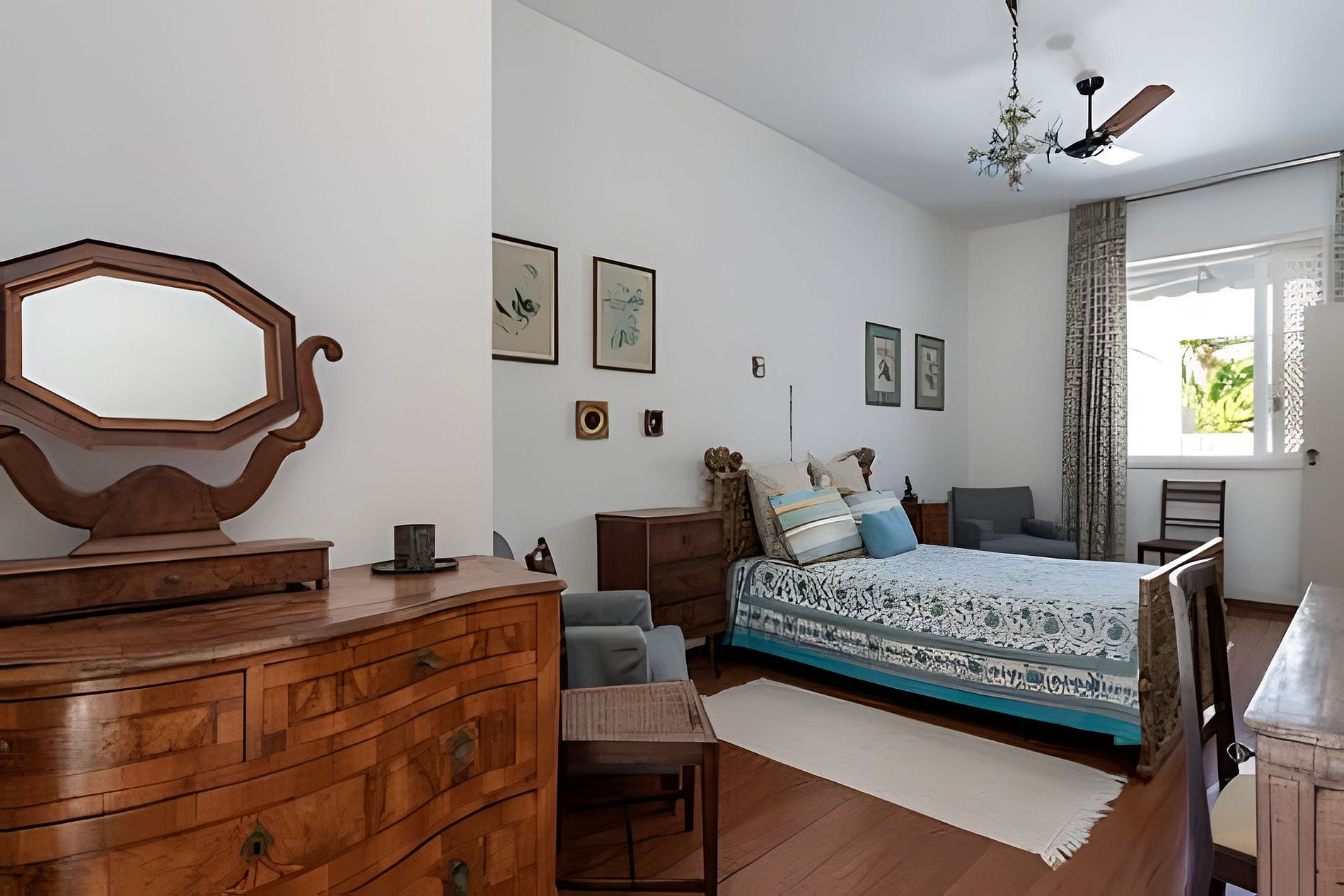 A área de estar inclui uma sala de estar ampla e iluminada, dois quartos conjugados e um charmoso jardim de inverno com acesso ao terraço. A convidativa sala de jantar acomoda até oito pessoas, e a cozinha totalmente equipada fica próxima à propriedade. A suíte máster, adjacente ao pátio, também se beneficia deste panorama excepcional, enquanto os demais quartos estão harmoniosamente dispostos para garantir conforto e privacidade.