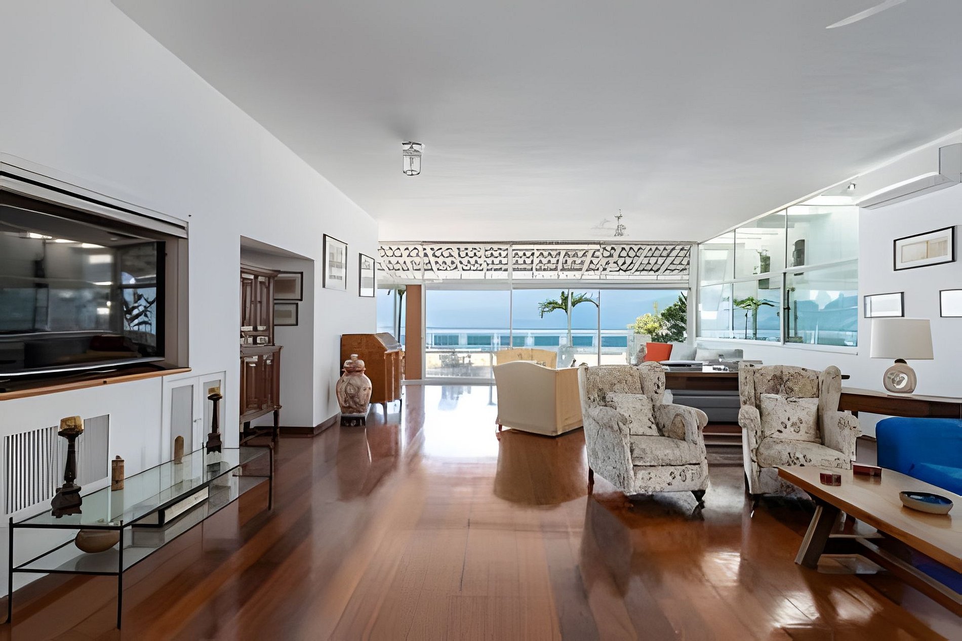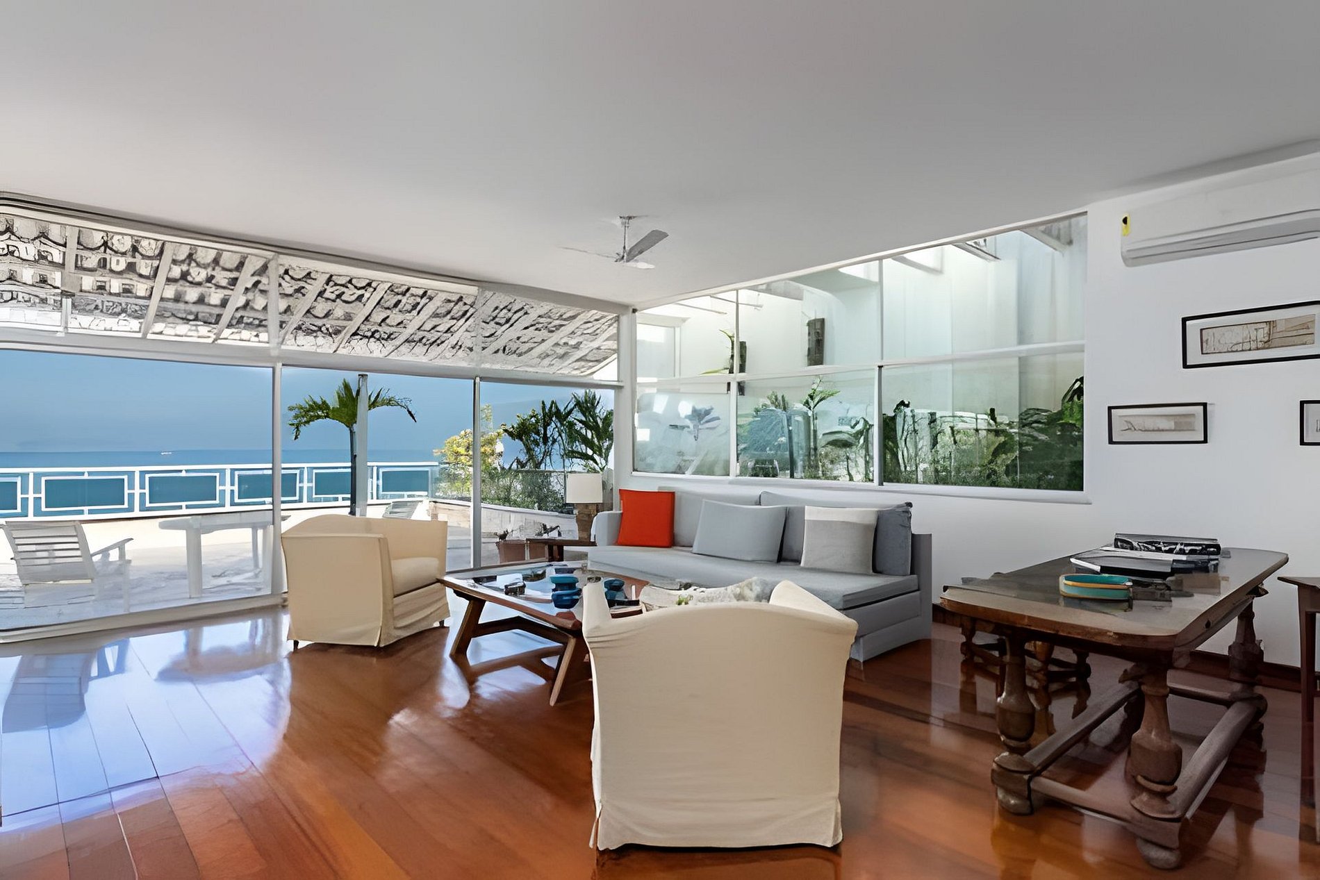 Impressionante cobertura linear de 900 metros quadrados com vista de 180 graus para o mar na Praia de Ipanema.