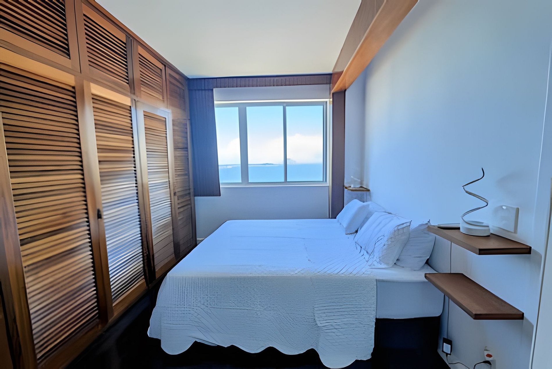 Magnífico apartamento de duas suítes para 4 pessoas localizado no 9º andar de um prédio seguro no Vidigal, Rio de Janeiro. A entrada se abre para uma ampla sala de estar com vistas deslumbrantes da baía do Rio de Janeiro e das praias do Leblon, Ipanema e Copacabana. Os dois quartos são espaçosos e ambos têm seus próprios banheiros de pedra. Cada chuveiro tem uma vista de tirar o fôlego para o mar, as praias e o relevo dessa cidade maravilhosa.